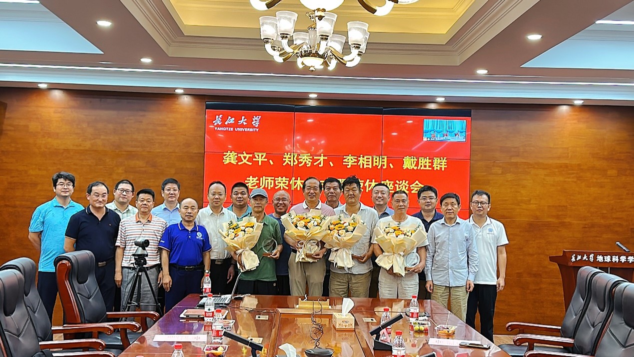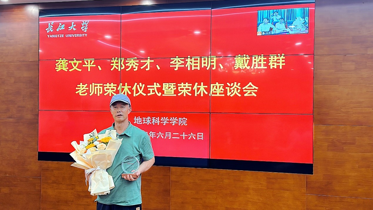 最后,副经理吴楠、韩登林、丁四兵、地质系主任胡忠贵为四位荣休老师颁发荣休纪念牌,向四位荣休教师献上鲜花,并合影留念,莫道桑榆晚,为霞尚满天,荣休仪式在温馨、欢乐和感人的氛围下落下帷幕。