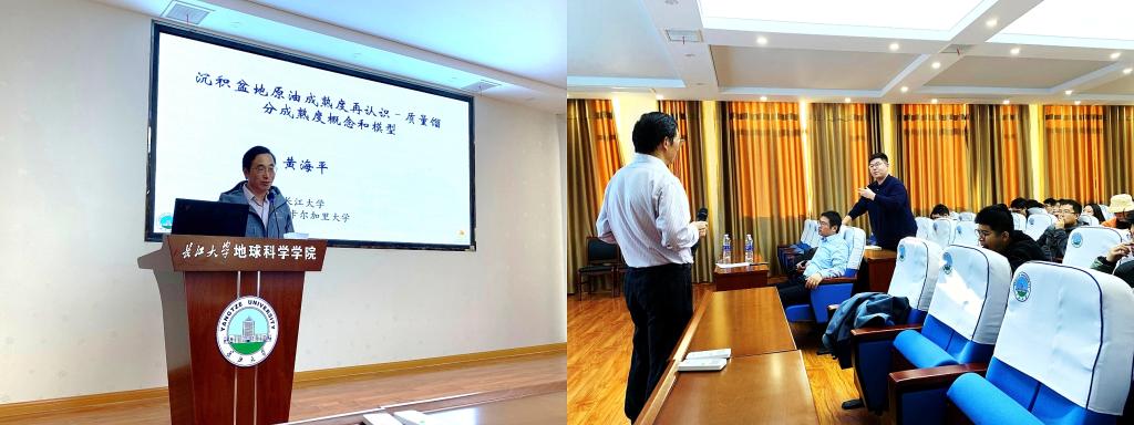 报告的第二阶段,江山副经理、石油系殷杰老师及与会员工围绕报告内容并结合自身科研工作同黄教授展开深入的探讨。最后,江山副经理总结到,本次报告提到的质量馏分成熟度概念具有高度的创新性,将对当前深层油气勘探实践中的成藏史分析和油气源对比工作中具有深刻的理论指导意义,同时也有望在工业界产生广阔的应用前景。
