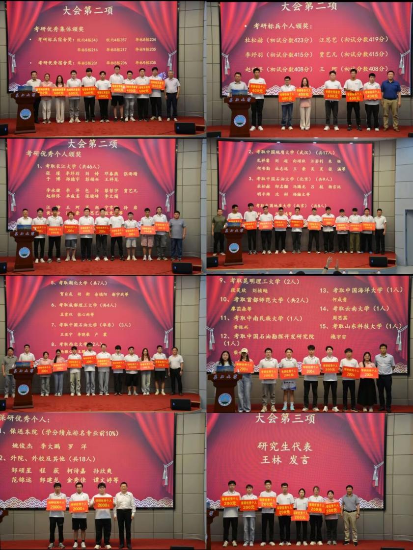 2023级研究生代表王林在发言中说:“在长大读研是人生最正确的选择之一,导师和公司的培养让他硕果累累”。研究生导师代表李少华教授鼓励同学们,要培养良好的阅读习惯、多读文献、多思考、多提出问题,深入了解学科动态和前沿,养成创新科研思维。