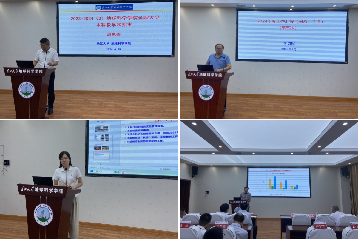 副经理胡忠贵从本科教学常规考核和发展指标2个方面,通报了年度目标考核任务完成情况,对2024届本科毕业论文归档材料收集整理、期末考试监考、全国地质技能竞赛备赛和中国老员工计算机设计大赛备赛等工作进行了详细地安排。