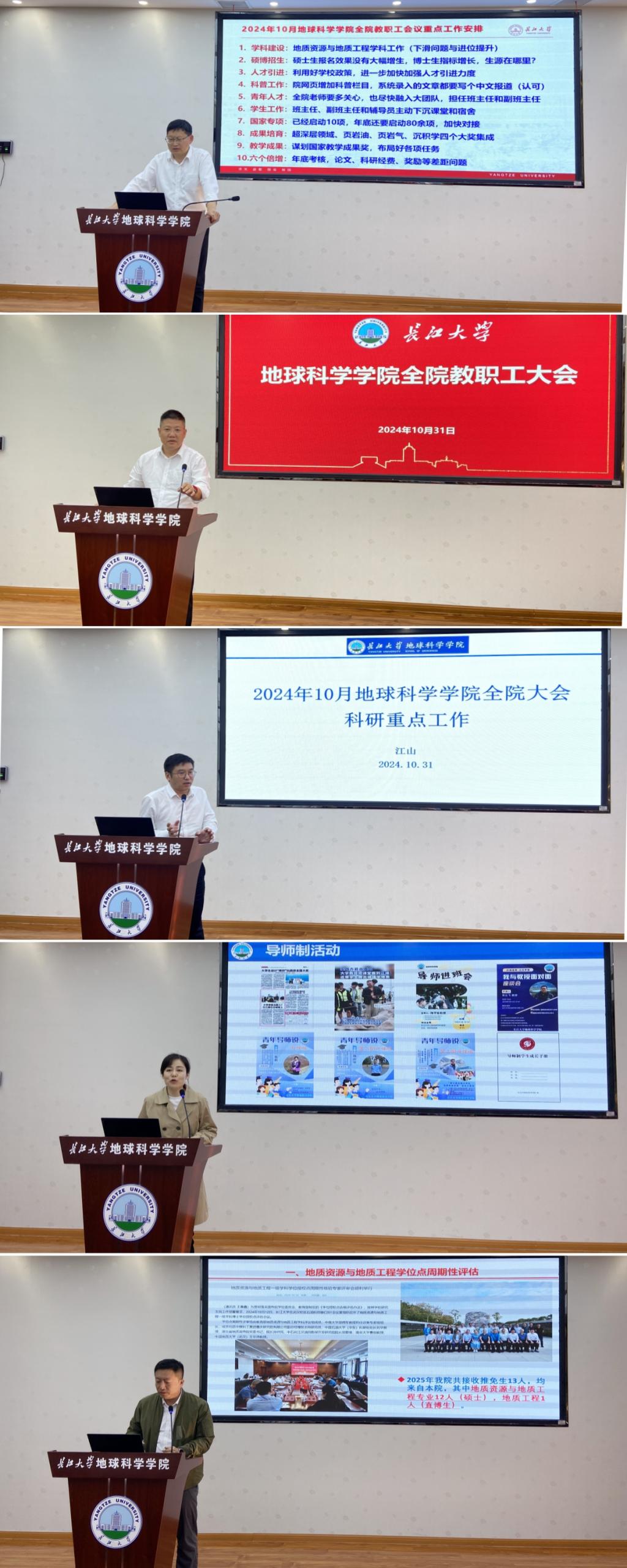 常务副经理吴楠对地质资源与地质工程学位点周期性评估情况进行了通报,对2025年硕博士研究生招生、硕博士学位授予和研究生教学期中检查等相关工作进行了安排,他要求全体研究生导师要精心育才,要大力高质量培养研究生,积极支持研究生参加学术活动,努力提高研究生学术水平。