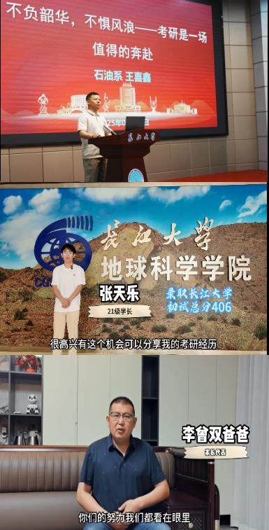 导师代表王喜鑫老师在发言中,结合自己求学求职的心路历程,分享自己和员工相处的点滴经历,鼓励同学们在考验路上做到持之以恒,他告诉同学们:“考研不是选拔最聪明的人,而是能坚持的人,真正的坚持是在没有看到结果的时候,依然持续的努力”。现场还播放了班主任和员工家长代表的祝福视频,为22级同学送上考研祝福。