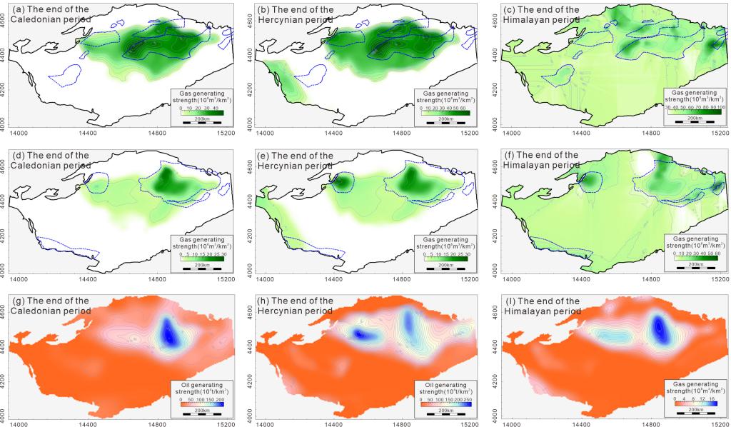 通过盆地模拟,计算出克拉通盆地南华系、埃迪卡拉系和寒武系烃源岩在关键地质历史时期的生气强度和生烃量,华南和塔里木克拉通盆地总生气量分别为:6551、2332万亿立方米,资源潜力巨大,奠定了万米深层油气勘探的基础。