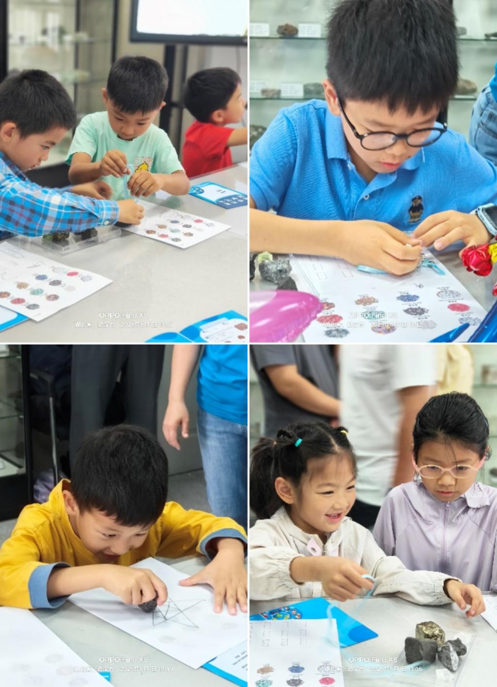 活动的最后环节充满了欢声笑语。孩子们在指导下,动手制作了新颖别致的矿物藏宝盒。晶莹剔透的宝盒不仅承载了他们对矿物知识的兴趣,更成为此次探索之旅的美好纪念。当孩子们接过象征荣誉的地学科普研学证书时,喜悦之情溢于言表,为这场精彩纷呈的科普研学之旅画上了圆满的句号。