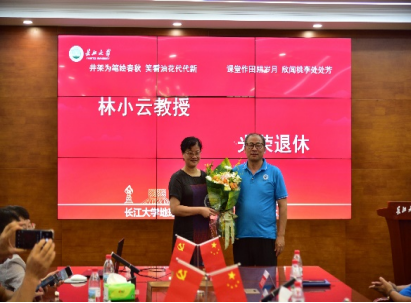 公司副经理胡忠贵代表公司向林小云教授颁发了承载着全体师生敬意与祝福的荣休纪念牌。副经理、工会主席李功权代表公司工会献上了鲜花,表达对她退休生活的美好祝愿。