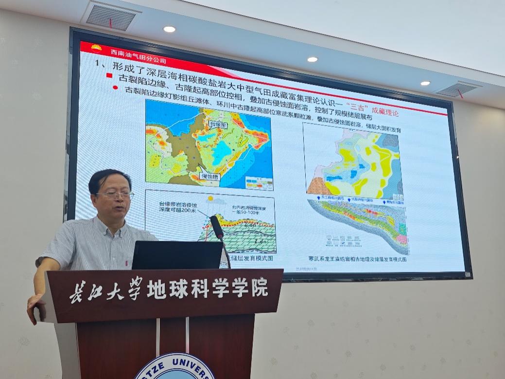 在报告最后,杨跃明首席结合自身丰富的实践经验和西南油气田多年的勘探成果,向师生们分享了宝贵的心得与启示。他强调,“持续探索,大胆实践”是勘探取得发现的前提,而勘探的新突破也不断推动者理论技术的创新和发展,最终推动着大气田的发现。