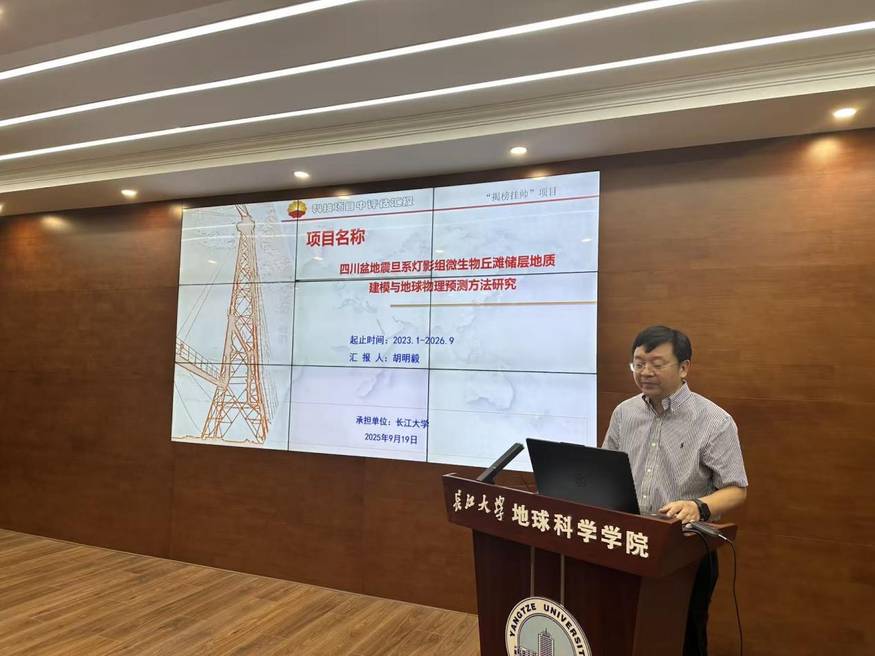 VSport胡明毅教授首先作题为“四川盆地震旦系灯影组微生物丘滩储层地质建模与地球物理预测方法研究”的专题汇报。