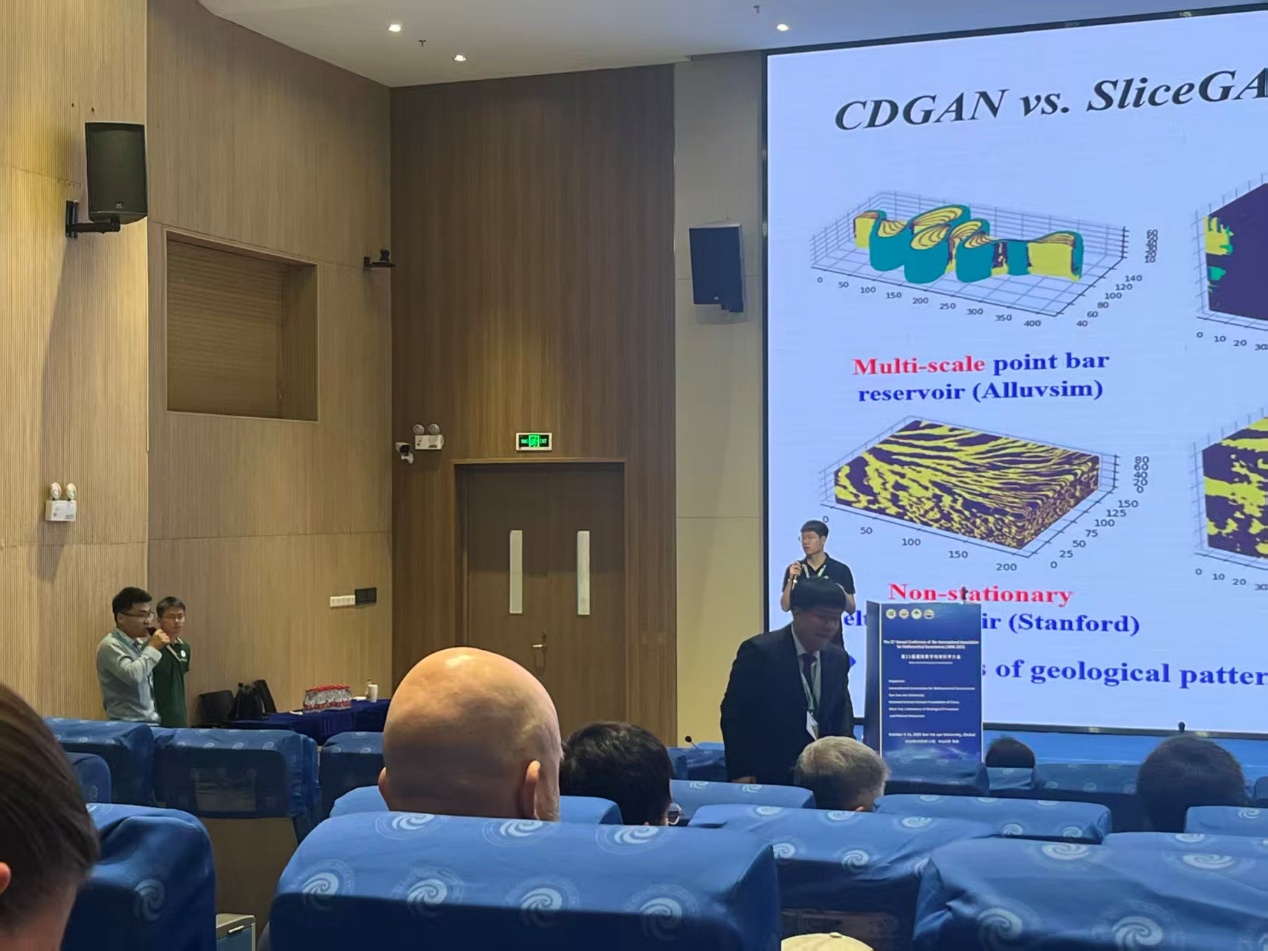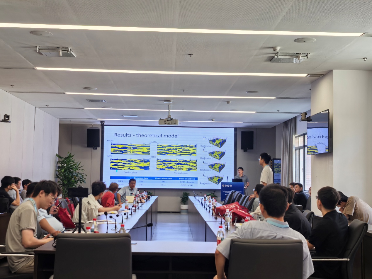 胡迅博士后以《Cross-dimensional reservoir facies modeling method based on generative adversarial networks》为题进行学术汇报。针对储层相建模中“无法用公式构建3D数据集的储层如何高效建模”、“地质学家的构型解剖2D成果图能否转化应用于3D建模”等行业关键问题,创新提出了基于生成对抗网络的跨维储层建模方法(CDGAN)。该方法成功搭建起传统二维地质图件与三维储层建模技术之间的桥梁,不仅有效缓解了复杂储层建模中3D训练数据获取的突出难题,更为未来通过2D-to-3D方式训练储层建模大模型奠定了重要的理论与技术基础,为推动储层建模领域的智能化升级提供了新的思路。