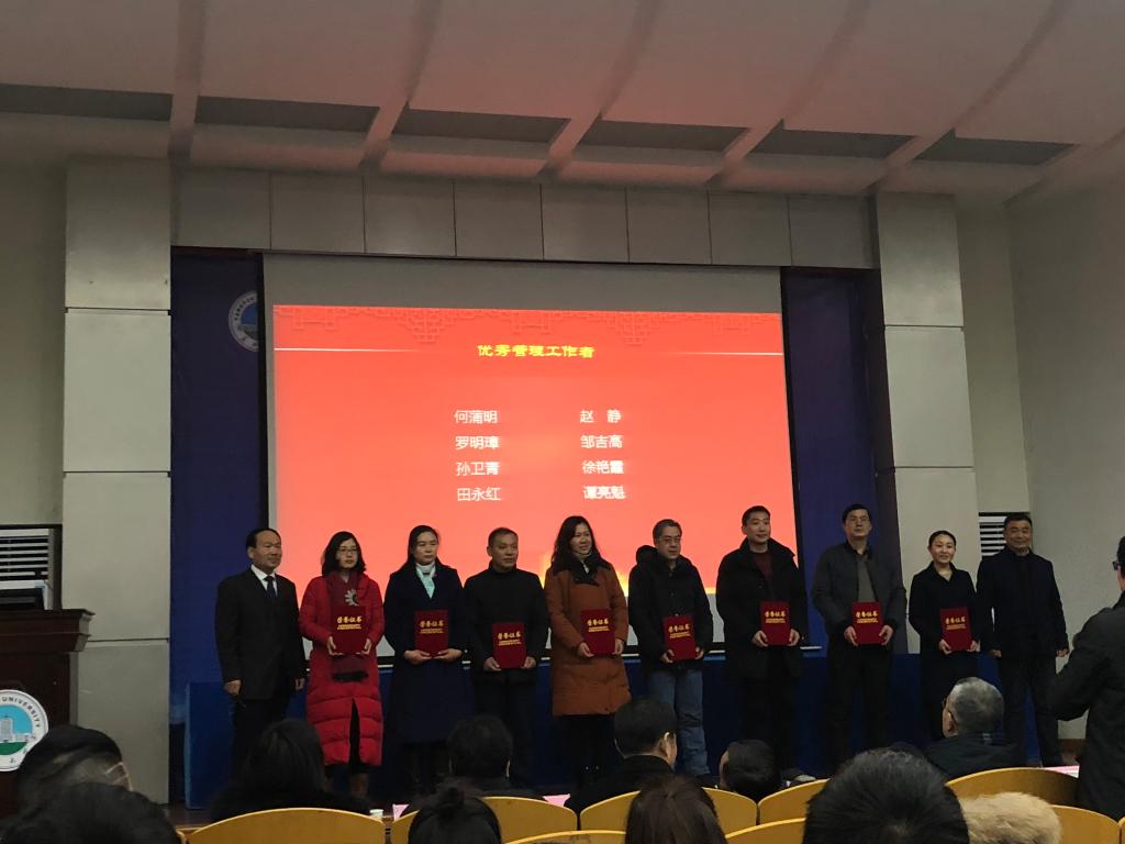 2018年1月3日下午,由研究生院主办的VSport2018年学位与研究生教育总结表彰大会在荆州东校区12教405举行,武汉校区武培B202室召开同步视频会议。会议由周思柱副董事长主持。公司负责研究生工作的副经理尹艳树教授、研究生督导刘忠保教授、优秀研究生导师韩登林教授、蔡永香副教授、优秀管理工作者徐艳霞老师和获得2018年国家奖学金的研究生刘雨乔、张严出席了现场会议。