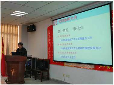 经理何幼斌向大会作2018年度工作总结报告。他从党建与思想政治工作、团队队伍建设、本科与研究生教学工作、科学研究工作、实验室建设等方面总结了2018年公司的工作情况和取得的成绩,并提出了2019年工作要求与希望。