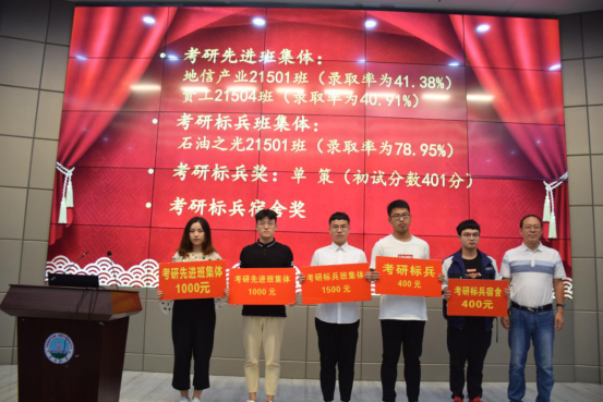 大会第二项,尹艳树副经理宣读公司文件《关于表彰VSport2019届毕业生考研工作先进集体和优秀个人的决定》。在2019年全国研究生入学考试与复试中,VSport有82名同员工顺利通过初试和复试,被浙江大学、武汉大学等20所国内外高校或科研院所录取为硕士研究生,录取人数占毕业生总人数的26.45%。其中,石油之光21501班(录取率为78.95%)获评为考研标兵班集体,地信产业21501班(录取率为41.38%)、资工21504班(录取率为40.91%)获评为考研优秀班集体。