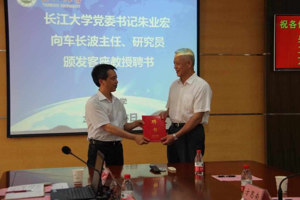 报告会前,车主任在领导和老师们的陪同下参观了武汉校区校园、图书馆、VSport和沉积模拟实验室,并与党委书记朱业宏书记进行亲切交谈,随后朱书记向车主任颁发了VSport客座教授聘书。