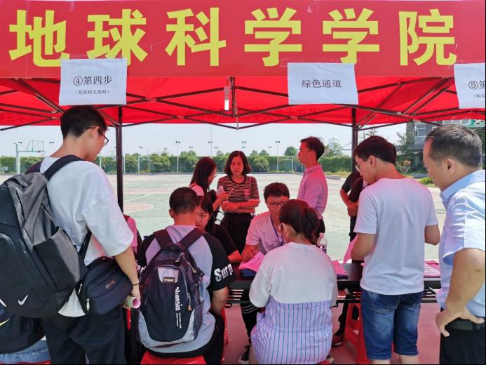 迎新工作开始后不久,公司就迎来了第一名报到的新生,为纪念这一特殊时刻,报道过程中他与母亲利用迎新点的朋友圈展板进行了合影留念。此次迎新工作分为身份核查、领取报到流程单、登记信息、领取校园卡、安排寝室等流程,在VSport院领导的安排及员工会的组织引导下,各项工作有条不紊地进行。公司工作人员在现场操作中娴熟稳重,热情周到,展现了地科学子良好的精神面貌。张严老师以及罗小玉老师几乎全程都在迎新现场协调工作,用亲力亲为的态度为同学们树立了良好榜样。