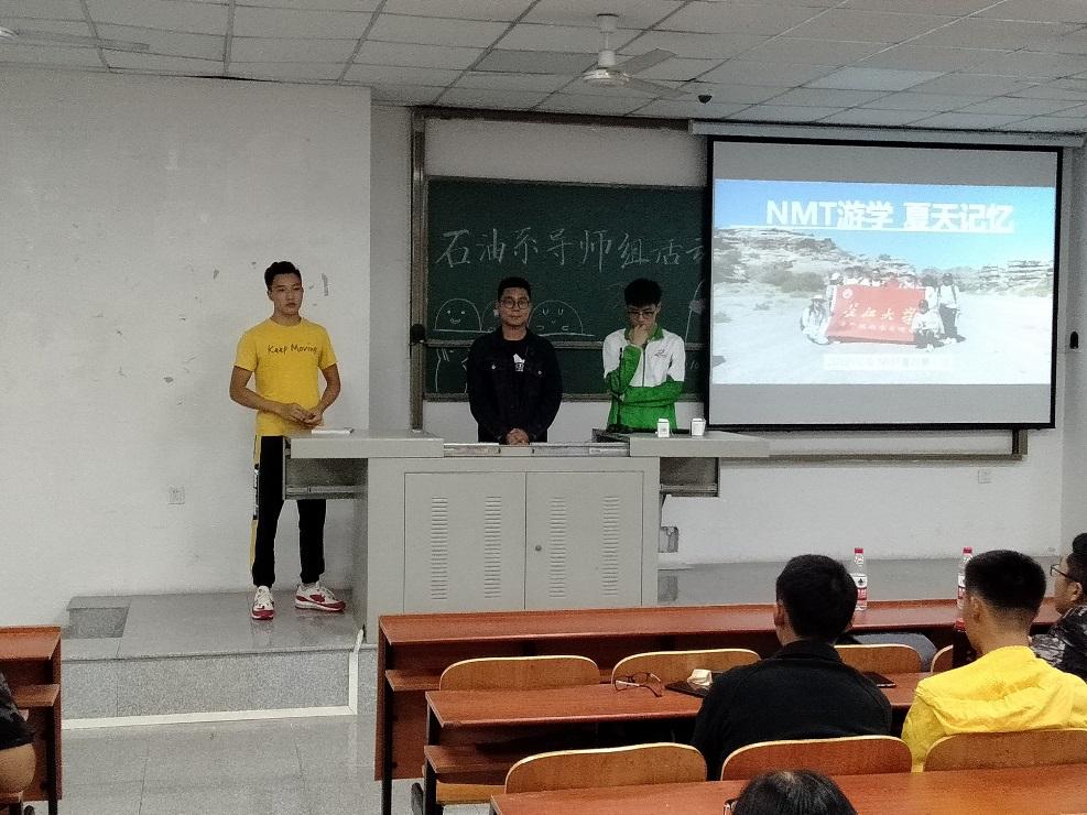 资源勘查工程游学交流会上,来自17级的陆相吉为同学们讲述了在外的游学经历,立足学、吃、住、玩四方面生动形象地介绍了中西方文化差异,并由此建议石油系的同学们在日常生活中应该取长补短。16级的曹日洲则以自己在国外的切实感受为同学们传授学习、生活方面的经验,使同学们对游学项目、专业学习有了更加浓厚的兴趣。