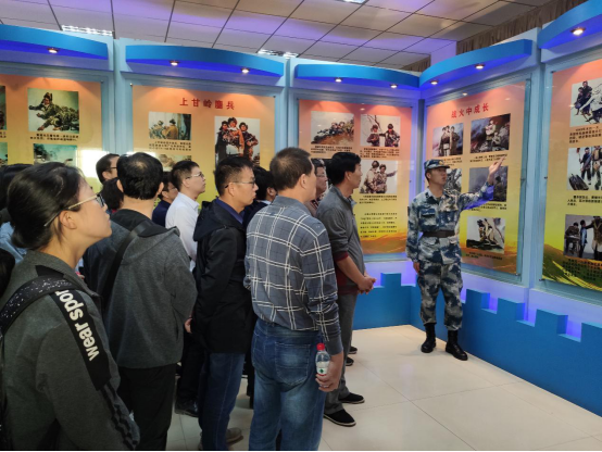 在“黄继光英雄连”连队战士喻朝阳(原公司资工21405班员工)的带领和讲解下,老师与同学参观了黄继光连荣誉室,一张张图片、一排排奖杯、一面面锦旗,是英雄连队“听党指挥、能打胜仗、作风优良”的印证。在98抗洪、国庆阅兵、中俄联演与汶川抗震……中都有着黄继光连队的影子,薪火相传、历久弥,新黄继光英雄精神已深深融入连队发展的血脉。站在历史面前,凝望那段记录苦难辉煌的文字和曾经鲜活的年轻生命时,在场的师生无不为革命先烈们坚毅的品格和随时为人民付出一切的牺牲精神所震撼感染,是英雄的鲜血换来了我们今日的幸福生活!随后,在讲解战士喻朝阳的带领下继续参观了士兵宿舍与连队训练的场地,更加近距离的感受军队的魅力所在。
