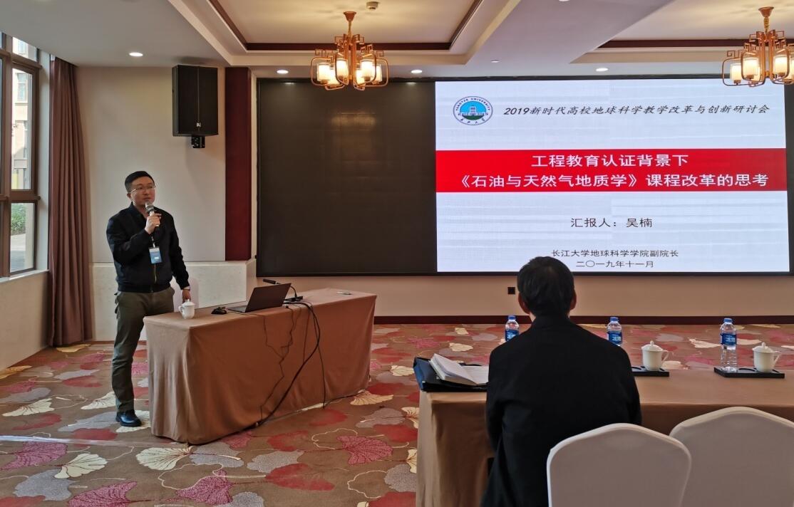 在广泛听取大会各项报告的同时,VSport吴楠副经理和李功权副教授、地球物理与石油资源公司毛宁波教授、分别就工程教育认证背景下“石油与天然气地质学”课程改革的思考、综合地质实习虚拟仿真平台的构建、“地震勘探原理”金课建设与思考做了专题的报告,并同与会专家教授进行进一步交流与沟通。