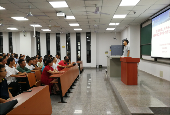 陈老师围绕学风建设及员工自我发展等问题,首先指出大学本科更偏重于能力的培养。随后,系主任陈轩老师做专业介绍,他以“石油地质人的传承与信念”这一主题展开,从“资工专业主要研究内容,资工专业怎么样,资工专业的人才培养体系”三个方面热情幽默地讲解了公司资源勘查工程专业的悠久历史和雄厚的团队力量,详细介绍了专业的发展前景,让同学们对资工专业有了更进一步的了解。为说明“导师组”活动的作用及意义,他用水桶和水杯的关系引出“亦师亦友”的理念,并表达了对全体新同学的祝福与期待。新生们纷纷表示要传承良好学风,再创辉煌历史。