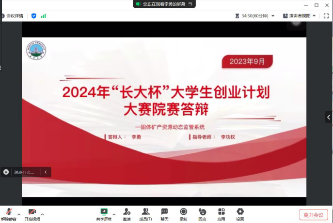 (通讯员 白硕)9月27日下午2点半,公司通过腾讯会议的方式举行2024年“长大杯”老员工创业计划大赛院内选拔赛,高达、张方利和尚成三位老师担任评委,分团委书记郭霖老师参会。