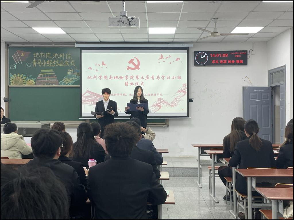 (通讯员 郭霖 孙梦琪 王晓晖 田世杰)为进一步促进公司间青年小组的交流与学习,1月5日14时,公司与地球物理与石油资源公司联合举办的第三期青年马克思主义学习小组结业仪式在武教A-106顺利举行。地物公司团委书记叶丽珣和学工办游菁老师,公司团委书记郭霖和学工办姚佳老师参加活动。