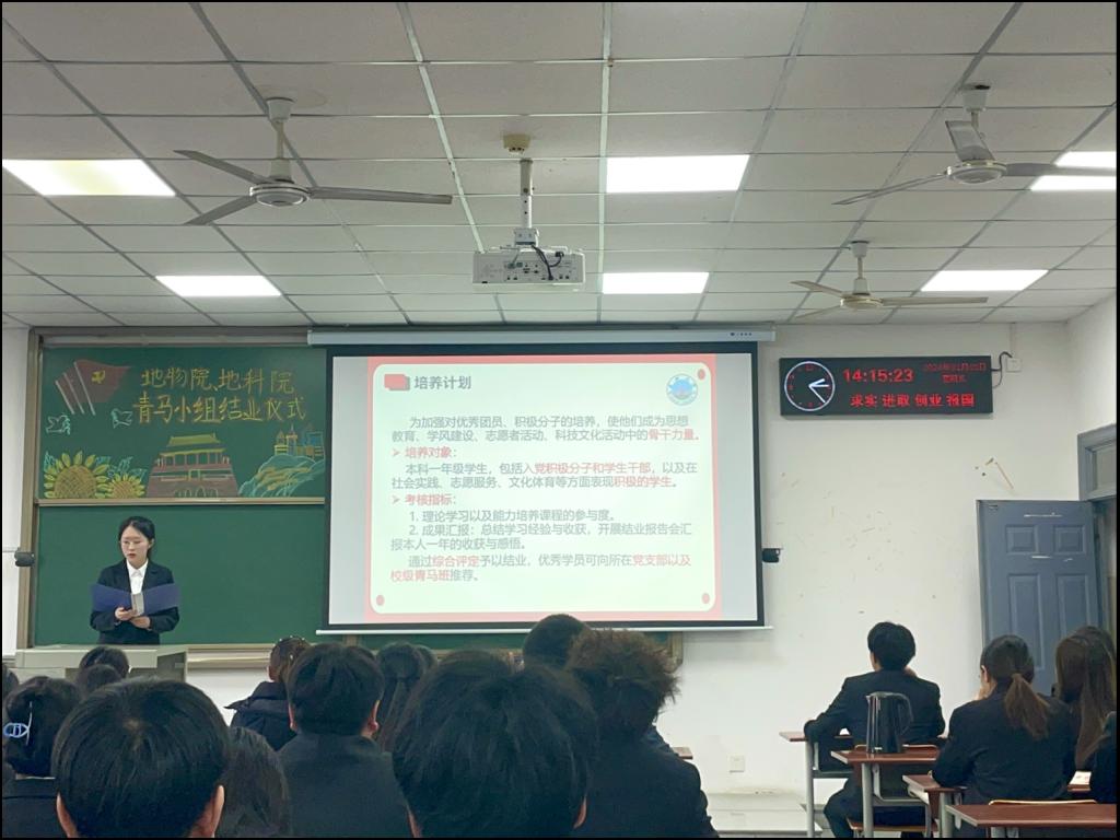 接下来,地物公司青马学习小组成员代表邓佳琪和李瀚霖也汇报了自己一年的学习情况。邓佳琪真诚讲述了在青马学习小组参与各类活后的所思、所感、所悟和所获。李瀚霖通过一段简短的视频,回顾了青马学习小组的集体活动,并对培养过青马小组的领导、老师和学长学姐表示感谢。他说一年的学习让小组成员不仅对马克思主义有了更深入的理解,还深刻体会到了青年的使命。
