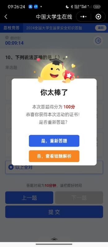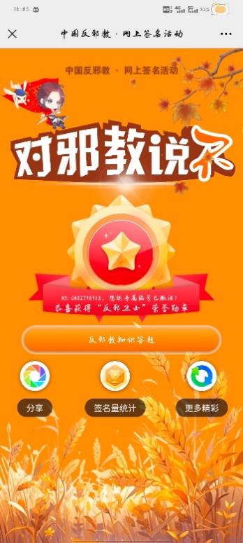 在班会结束以前,同学们纷纷在“中国反邪教“公众号上进行网上签名,积极参与“全国老员工国家安全知识答题”活动,生动体现了同学们反对邪教的决心和信心,同时增强了同学们国家安全责任意识和社会责任感。