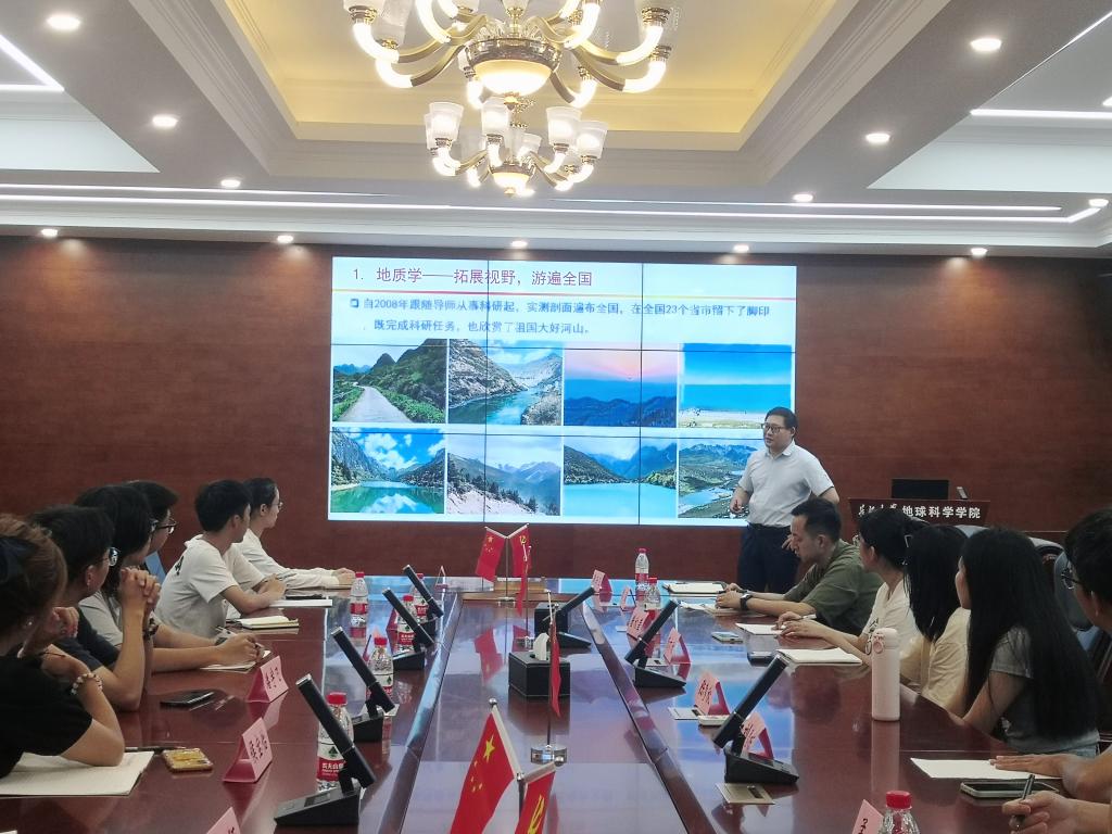 黄云飞老师首先讲述了自己的求学经历,介绍了个人在教学、科研、社会工作方面的主要成果,然后为大家讲解了古生物地史学和二叠纪-三叠纪生物演变的基本情况。他谈到:“我们通过开展地质历史时期的实例研究,服务生态文明建设,为建设美丽中国贡献一份力量。同学们在专业知识时,也要做到知行合一。学习地质知识时,要做到看山不仅仅是山,看水不仅仅是水。”此外,黄老师还强调:“大家要培养持续学习英语的习惯,这对于评奖评优、求职就业帮助很大”。黄老师还建议大家在本科期间要主动联系公司导师及班主任,积极参加科研训练、大创项目及“挑战杯”。与此同时,他提醒大家应提前谋划考研,明确下一个学业目标。