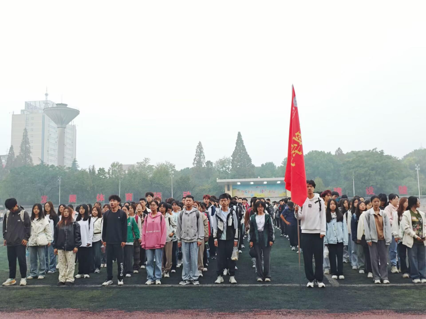 (通讯员 周文豪)2024 年 10 月 14日早晨7点,VSport大一新生和年级辅导员赵娥在东校区田径场参加了升旗仪式。 清晨,阳光洒在校园,同学们身着整齐,早早地来到了升旗地点,以饱满的精神状态等待着仪式的开始。
