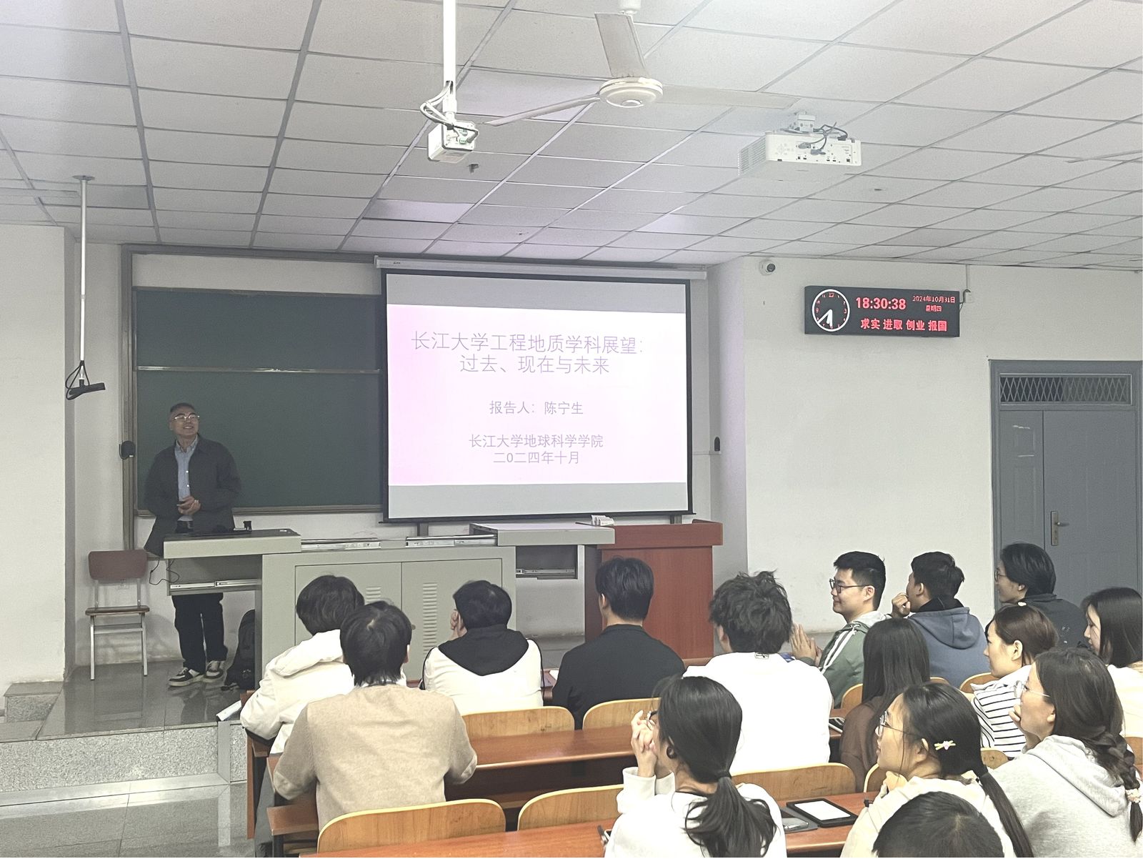 (通讯员 郭霖 党宇烁 李永健)为提高员工专业学习兴趣,帮助员工了解学科动态,助推公司学风建设,10月31日晚公司陈宁生教授做客“导师进班会”系列活动,在武教B103教室开展了题为“VSport工程地质学科展望——过去、现在和未来”的主题班会。陈教授团队教师、22和23级地质系全体本科生参会,现场掌声雷动,气氛热烈。