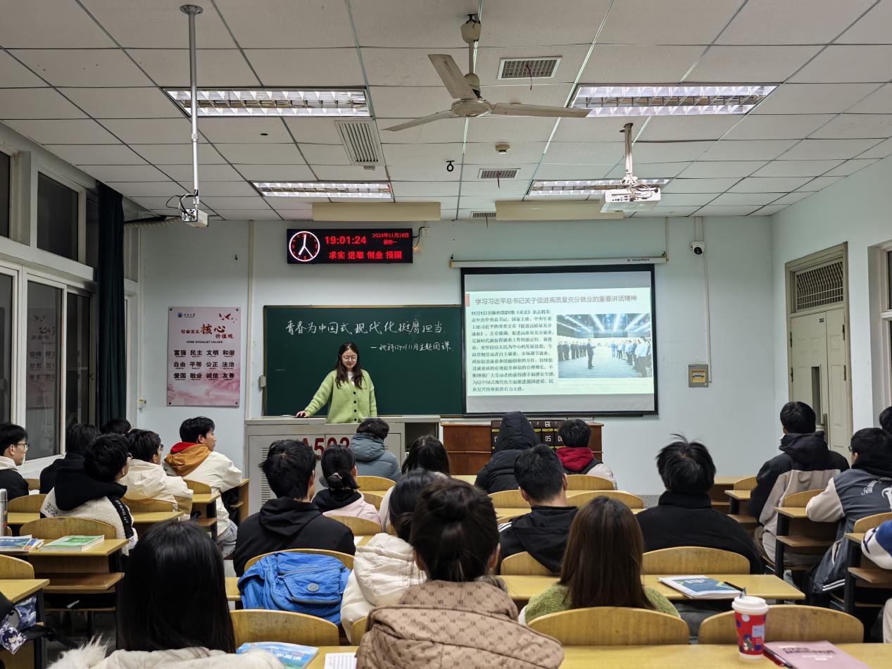 (通讯员 余美玲)为深入学习贯彻党的二十届三中全会精神,以全会精神赋能基层团支部、激活“三会两制一课”,公司各团支部开展了11月主题教育实践活动。本月示范团支部是地科12401支部,由团支书王彩蓓主讲,地科12401全体同学参与。