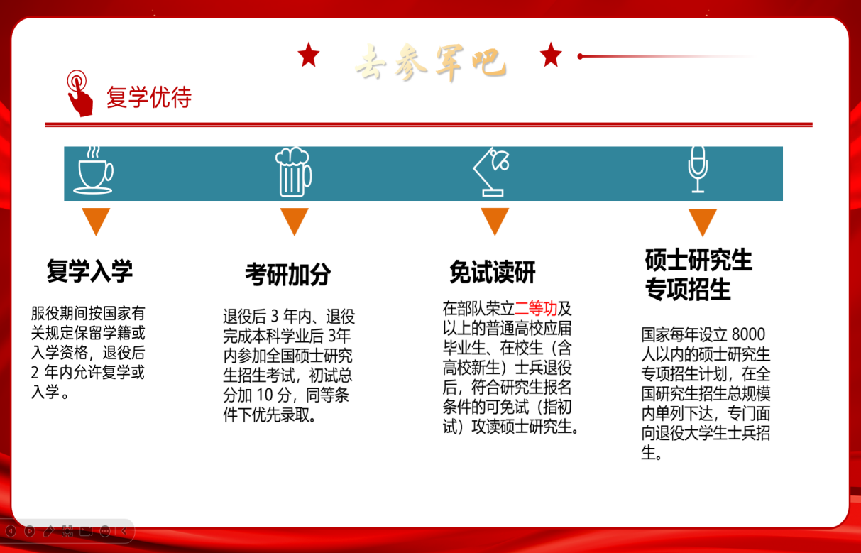 宣讲会伊始,郑杰以“青春系国防,参军志四方”为主题,讲述了自己执行任务的经历,阐明了参军入伍对于国防建设的重要意义,鼓励同学们通过参军实现自我价值。朱正康以“携笔从戎,强军有我”为题,围绕老员工征兵政策展开深入解读,例举如学费补偿、就业帮扶等优惠政策,并从报考军校、士兵提干等方面介绍了老员工士兵的成长路径。