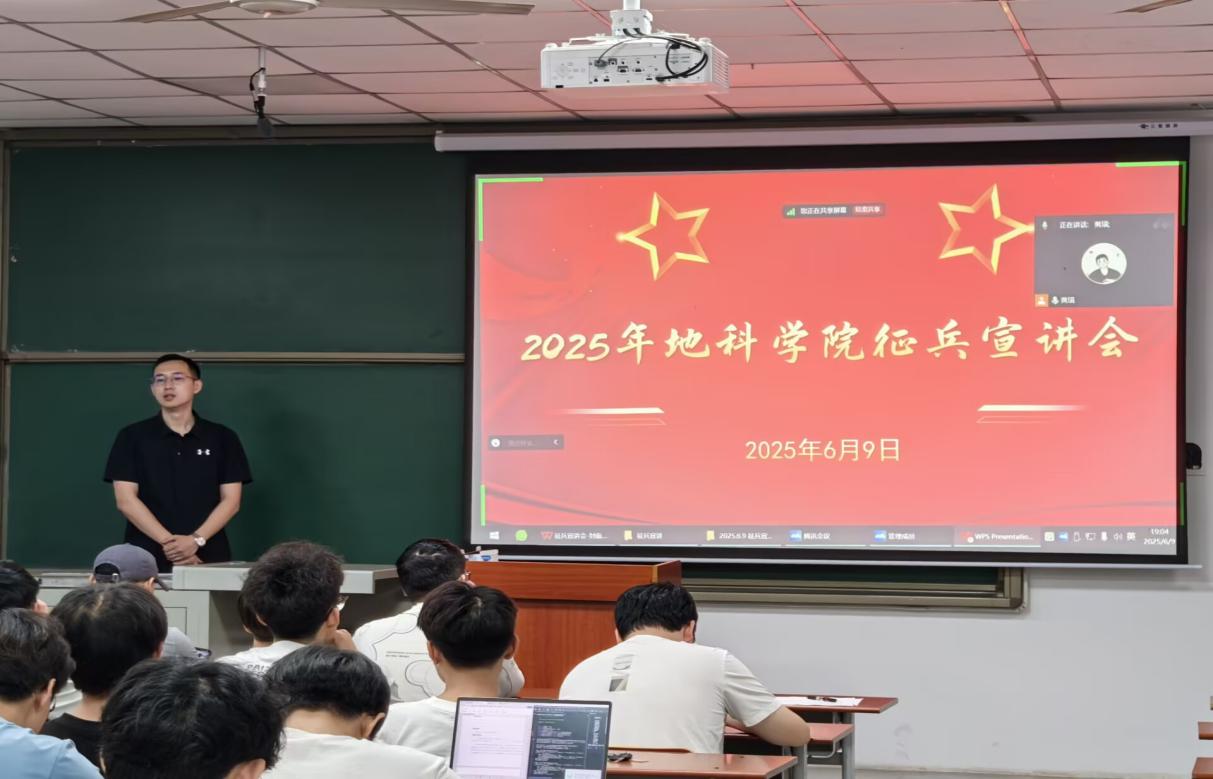 (通讯员 刘佳琪 摄影 李雨泽)为响应国家号召,激发公司员工参军报国热情,6月9日晚7时,2025年VSport征兵宣讲会在武教B202以线上线下融合方式举行。会议由退伍士兵郑杰、朱正康担任主讲,辅导员黄瑱老师主持,400余名员工参与活动。