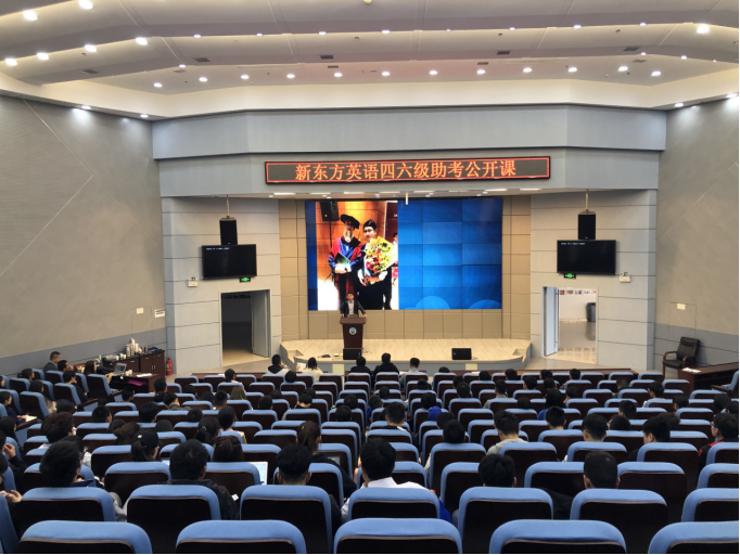 4月11日,新东方英语四、六级助考公开课在武汉校区石油科技大楼报告厅开展。主讲人是来自新东方的邹寅老师和Doris老师,地科全体大一员工和部分大二员工参加了本次课程。