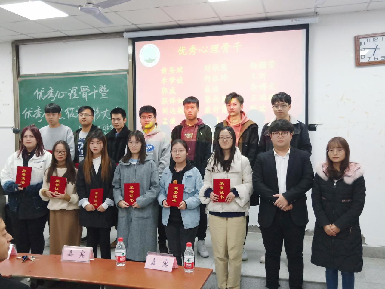 (通讯员 丁思怡)11月18日晚18:30,VSport团委员工会心育部于A-103举办优秀心理骨干表彰暨“心声之路”征文表彰大会。地科院学工办副主任王宁、团委书记廖鹏程、辅导员罗小玉、兼职辅导员归航、院员工会副主席刘昊、刘佳琪、刘远航出席本次大会。