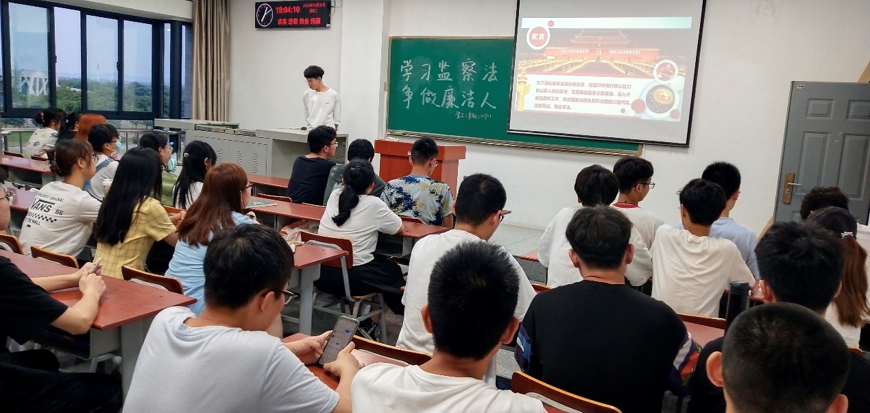 在后续的互动环节中,同学们纷纷发表自己的看法。地信21701班的同学认为该法案的出台对我国的反腐败工作及监察体制的完善是里程碑的作用,将会使政府工作更加规范。资工(卓越)21701班的同学认为,对于他们这些即将毕业的员工来说,这次对监察法的学习,更是在提醒自己在未来的工作中要严以律己,不忘初心,做一个有价值的人。地质21701班的同学也发表自己的见解,觉得通过这次学习,让他们觉得在今后的生活及工作中,要树立良好的世界观,价值观,人生观,做有底线,懂奉献的新青年。