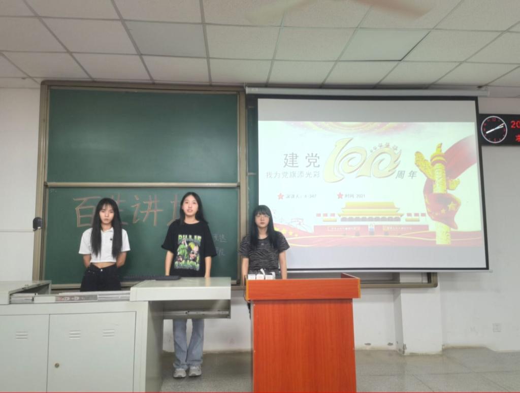 我们党的历史是中国近现代以来历史最为可歌可泣的篇章,历史在人民探索和奋斗中造就了中国共产党,我们党团结带领人民又造就了历史悠久的中华文明新的历史辉煌。在百年接续奋斗中,中国共产党团结带领人民开辟了伟大道路,建立了伟大功业,铸就了伟大精神,积累了宝贵经验,创造了中华民族发展史、人类社会进步史上令人刮目相看的奇迹。而党旗上有着中国共产党演变形成的历史印记和共产党人凝聚的心血。团小组成员用叙述、朗诵等载体讲述党旗形成演变的历史。2021年7月1日,是中国共产党建党100周年纪念日,这面以红色为底色,左上角缀有金黄色镰刀和锤头组成的党徽图案的旗帜,伴随和见证了中国共产党成长壮大的光辉历程。党旗的光辉,祖国的荣耀。生动地像世界宣告中华民族的伟大。正是中国共产党团结带领全国人民,艰苦奋斗,积极开拓。我们新时代青年为党旗增光添彩!