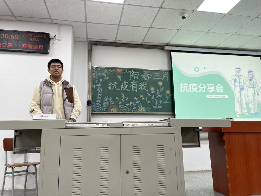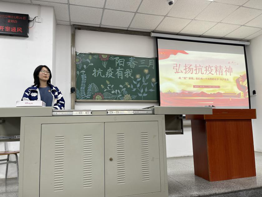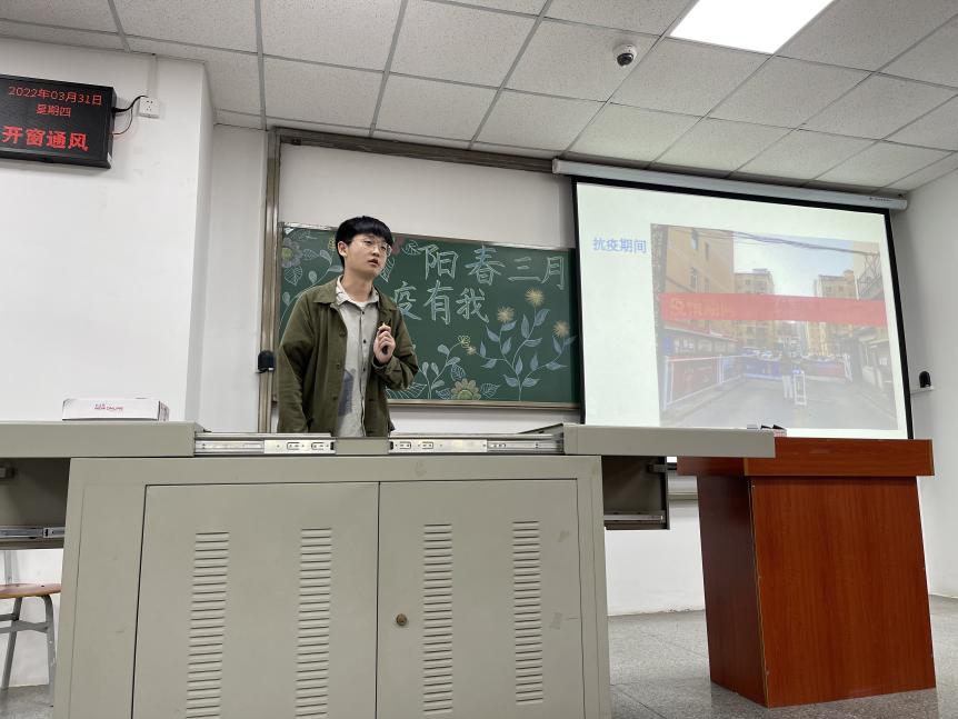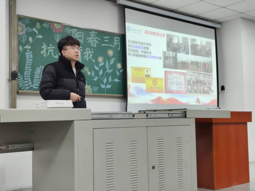 (通讯员 贾凡琛)为了加强公司员工对无私奉献雷锋精神的理解,弘扬伟大抗疫精神,鼓励大家向身边的“活雷锋”学习,并进一步增强同学们的疫情防控意识。公司于3月31日下午4点半在武教B106,举办以“阳春三月,抗疫有我”为主题的抗疫精神宣讲活动,五位员工抗疫志愿者代表分享了自己的抗疫的经历与感悟。分团委书记郭霖老师及全院入党积极分子参会。