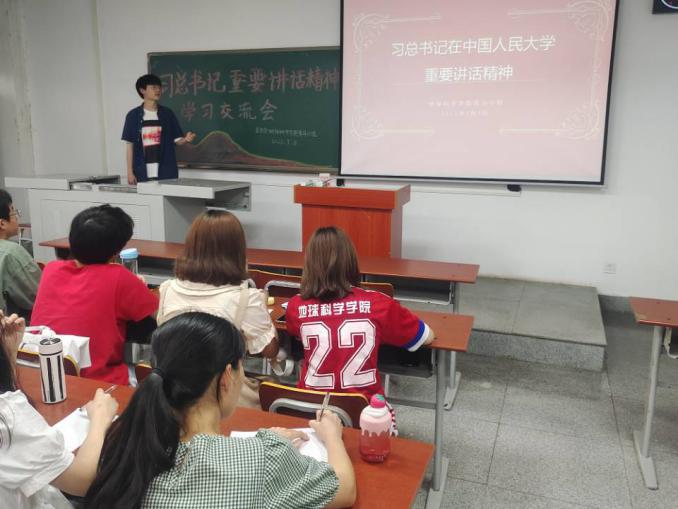 会议伊始,全体青马小组成员一起观看了总书记在中国人民大学重要讲话的视频。随后,每位同学依次上台进行学习分享。