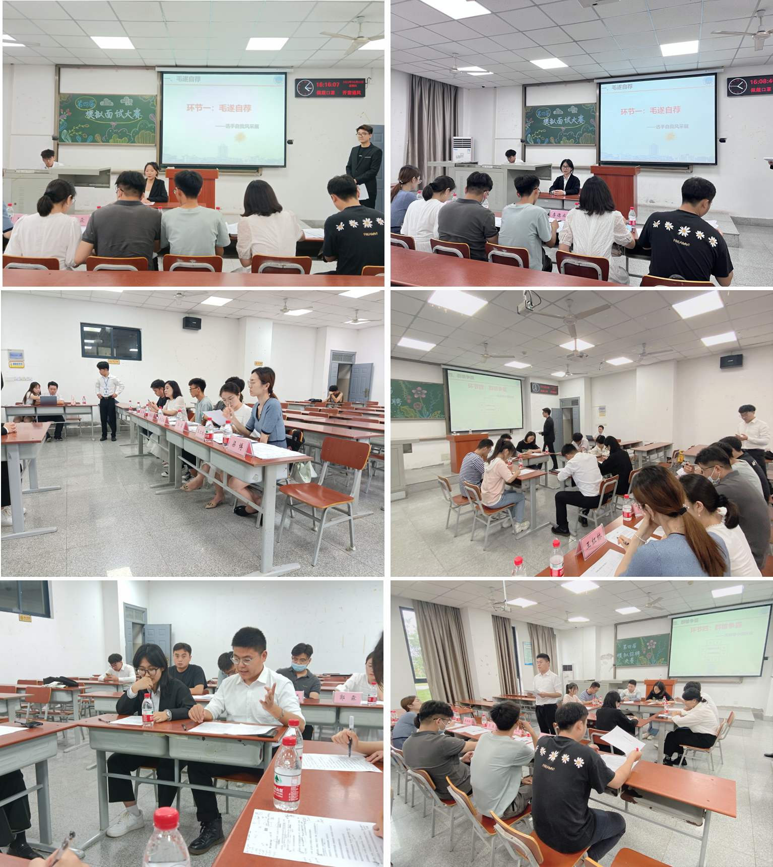 本次大赛分为两个分会场:第一场为情景面试,共分为三个环节,分别为自我介绍、过关斩将、对答如流;第二场为无领导小组讨论。个人面试部分得分前八名者进入第二场,最终通过两场综合得分评选出一、二、三等奖。