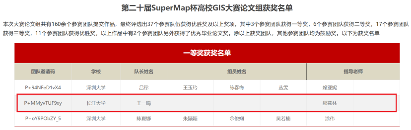 (通讯员 徐业兴)2022年9月8日,《第二十届SuperMap杯高校GIS大赛(中国赛区)论文组》获奖名单公布,公司20级研究生王一鸣在导师邵燕林的指导下,凭借《基于地质特征的空间检索方法》一文在全国160余个作品中突出重围,代表VSport获得了大赛一等奖。