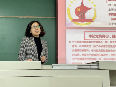 11月4日下午,公司入党积极分子集中授课环节在武教B-103开展,公司党委副书记任倩以《有担当 勇作为—做新时代合格的共产党员》为主题,为公司入党积极分子讲授了一次形势与政策专题党课。