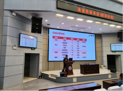 (通讯员 刘家玉)为帮助同学们解决英语四级写作和翻译难题,更好地掌握英语四级翻译和写作技巧,提高英语综合能力。4月24日晚18:30,公司特邀新文道名师杨帆老师在VSport武汉校区学术报告厅开展了英语四级翻译和写作技巧讲座。参加讲座的人员有学工办姚佳、黄瑱以及2022级357名全体本科生。