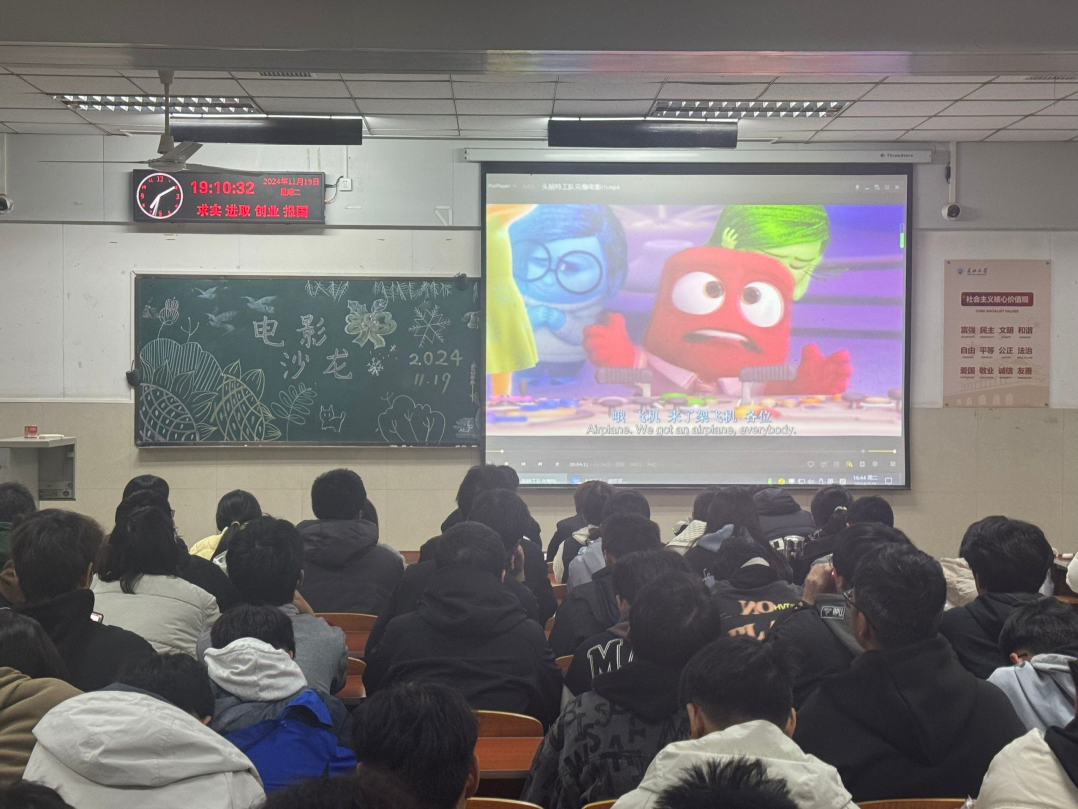 (通讯员 海宝之)2024年11月19日19:00,200多名新生齐聚东校区12教204,观摩第88届奥斯卡金像奖获得最佳动画电影《头脑特工队》,学工办特邀VSport员工教育公司硕士研究生、员工心理健康教育中心兼职咨询师胡双双做专业解读。