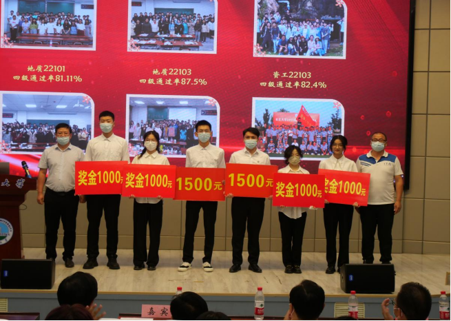 21级学子在6月份的英语四级考试中取得了一次性通过率81.6%的好成绩,6个班级过级率超过80%,5名同学超过600分。杨全辉书记宣读了表彰文件,系主任们为他们一一颁奖。取得625分好成绩的章元武同学分享他的英语学习经验。公司领导为每天陪伴21级同学进行四级备考的班导们颁发了聘书,向他们的辛勤付出致以诚挚的感谢。