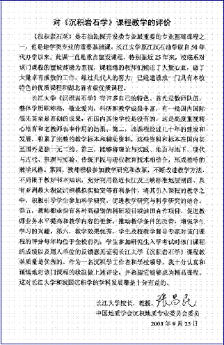 该课程在教材的选用、教学内容的取舍上适合于该专业员工的要求,这些主讲教师整体学历高,职称高,不仅教学内容熟练,而且教学方法灵活,注意 及时将该研究领域的新知识引入课堂, 特别是采用了多媒体等现代化教学手段,既形象生动,又增加了信息量,极大地调动了同学们的学习兴趣。 从我所了解的情况和指导的研究生来看,公司资工专业毕业的员工掌握沉积岩石学的知识较好,基本功都比较扎实,能很快地适应这方面的科研工作。( 详细内容)