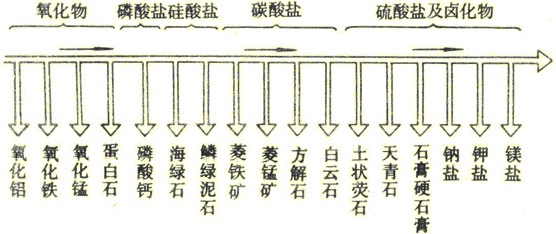 各种碳酸盐矿物如方解石、白云石等,风化稳定性甚小,很易溶于水并顺水转移。