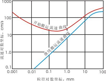 碎屑物质在流水中的侵蚀、搬运、沉积与流速的关系(尤尔斯特隆图解)