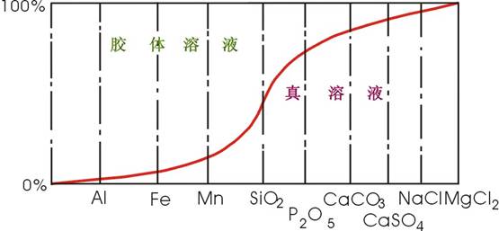 真溶液物质的搬运及沉积作用的根本控制因素是它们的溶解度,即溶解度愈大,愈易搬运,愈难沉积,反之,溶解度愈小,则愈易沉积,愈难搬运。