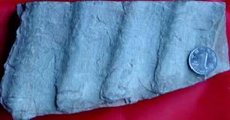流痕是在水位降低,沉积物即将露出水面时,薄水层汇集在沉积物表面上流动时形成的浸蚀痕。一般呈齿状、梳状、穗状、树枝状、蛇曲状等。