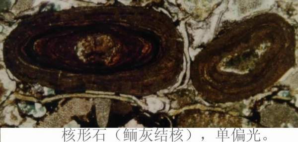 核形石——放射状结构(淡黄褐色),白云质