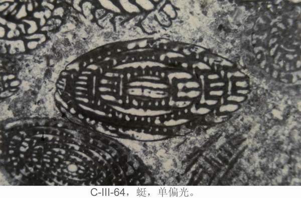 介形虫——玻纤结构、壳小而薄、边缘迭复等特点可与共它双瓣壳生物区别。